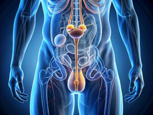 A detailed illustration of the male reproductive system, highlig